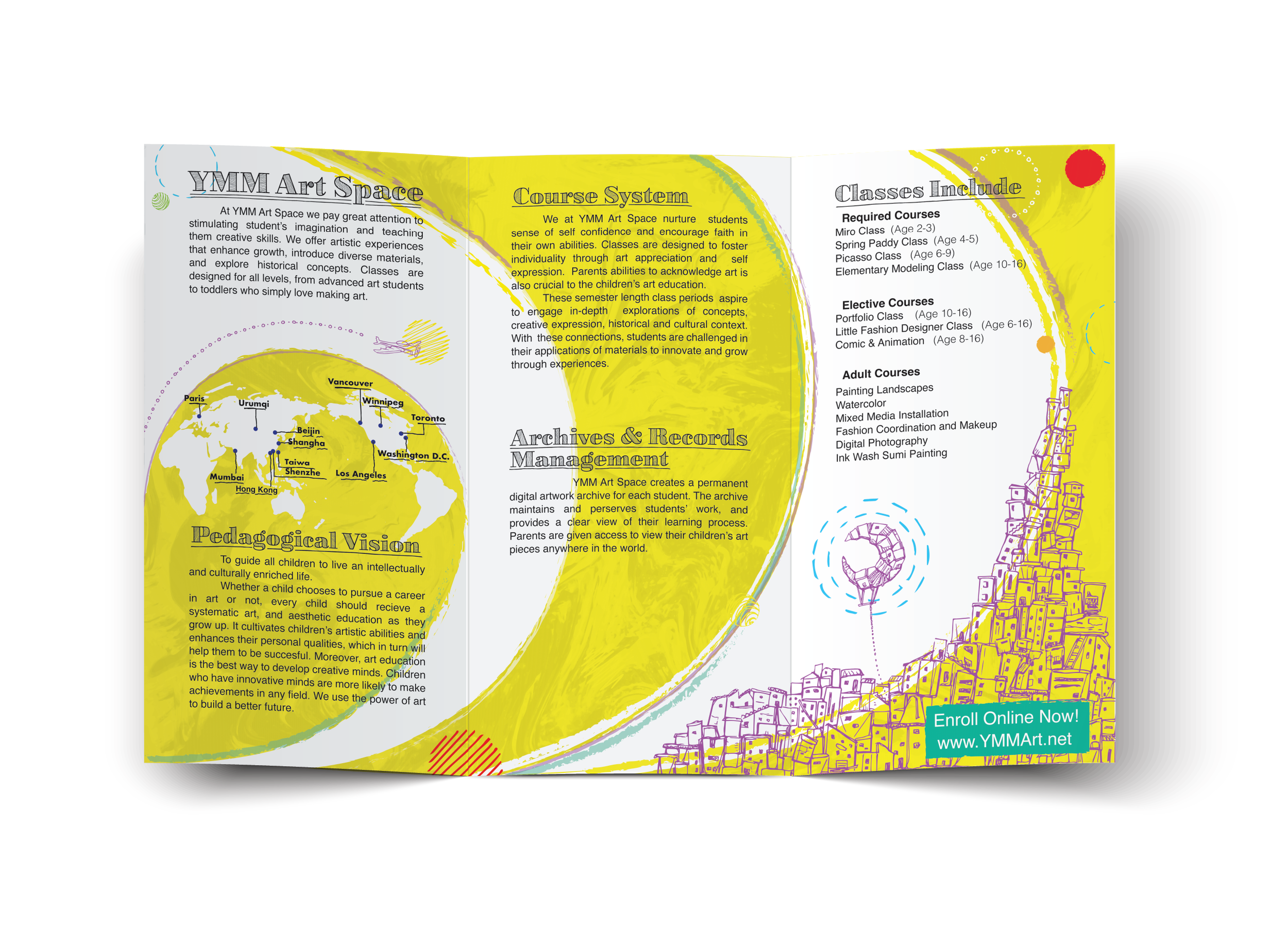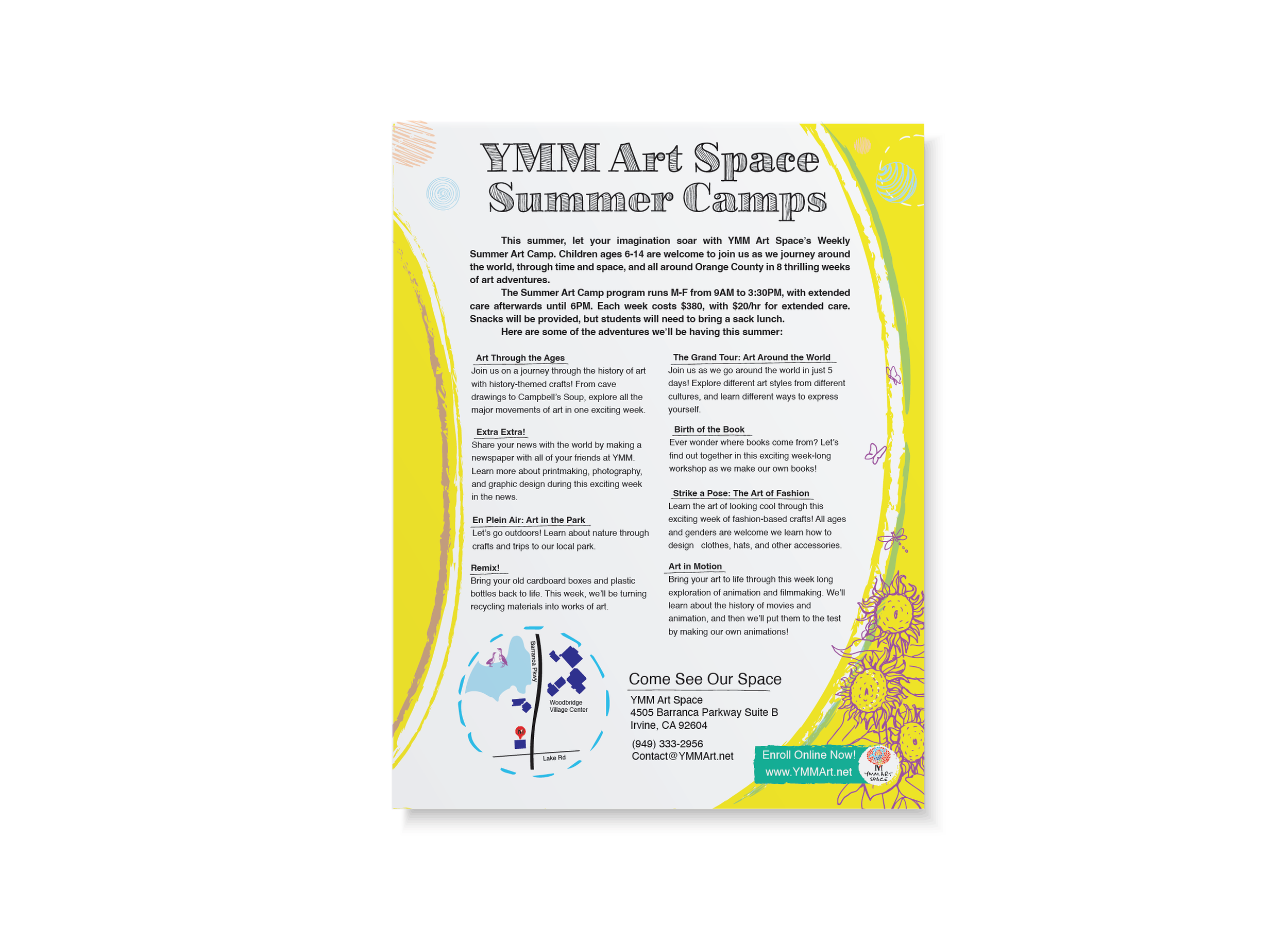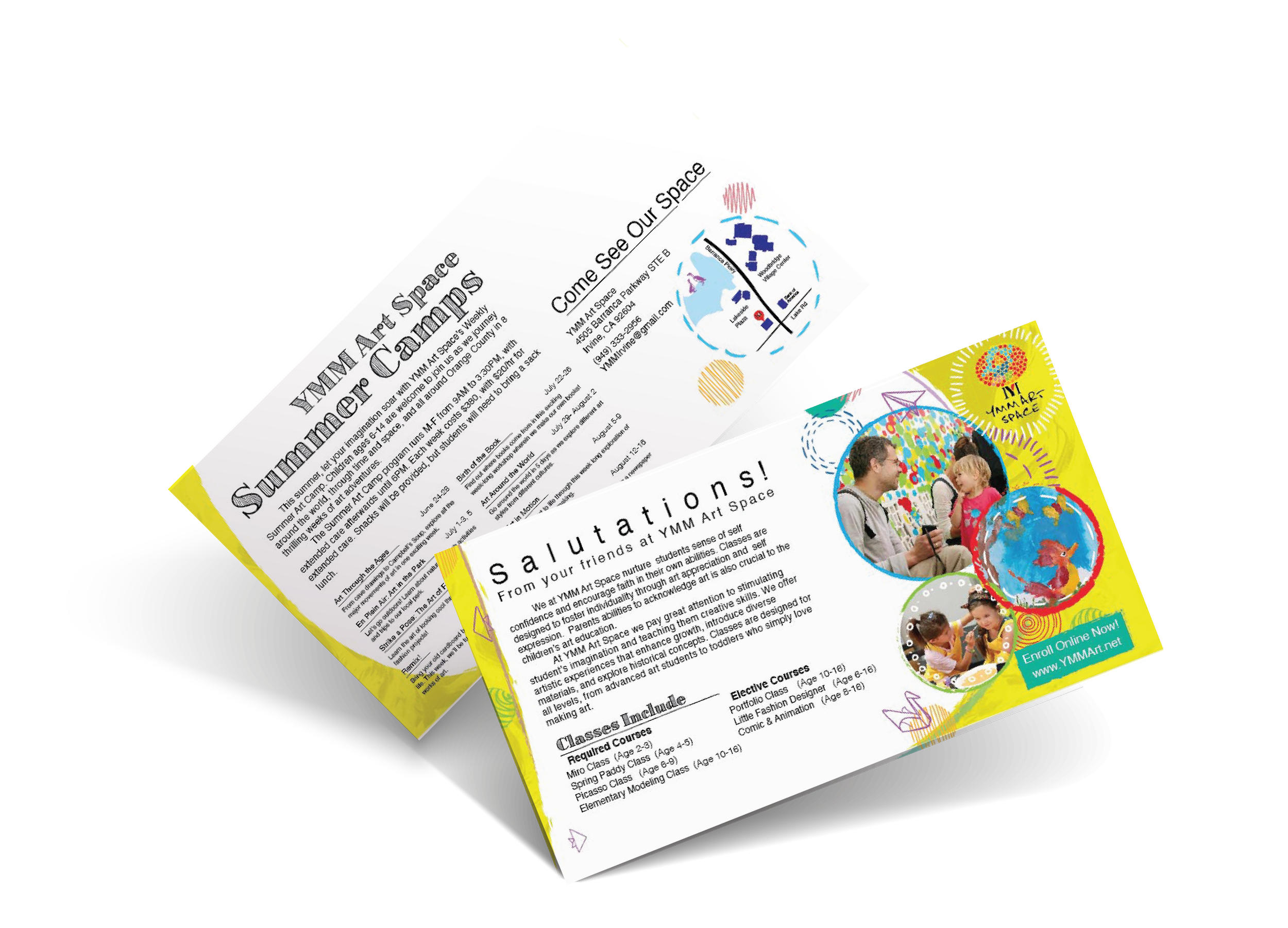 A series of promotional Materials i designed for YMM Art space of Irvine. I crafted the locations brand Identity to differentiate itself from competing art studios within the area while upholding the greater YMM Art Space branding.